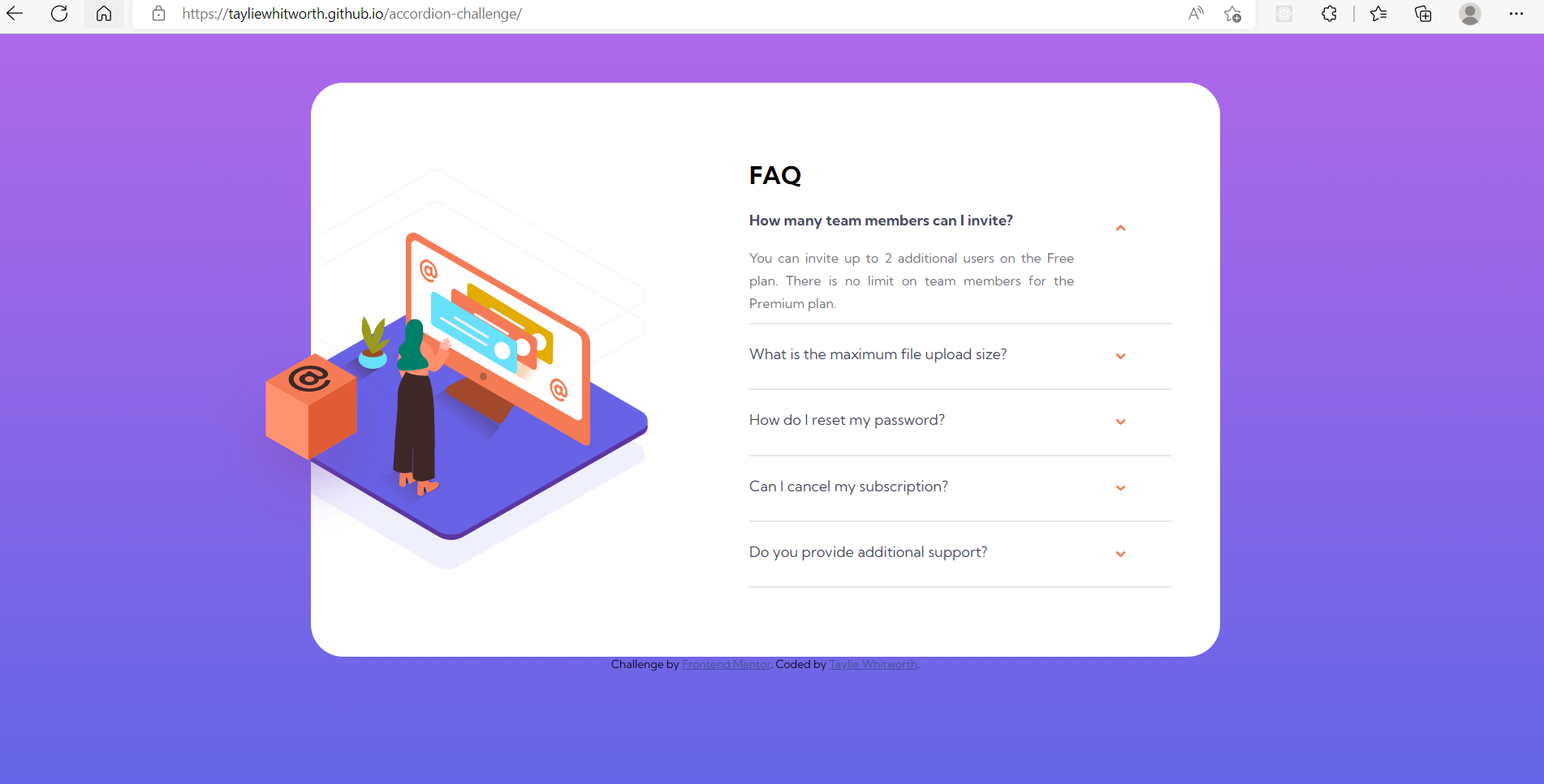 Coding challenges have helped me learn how to create projects that have a certain criteria to be met. I was able to replicate the challenge instructions and create the accordion function. The accordion function is essentially a drop down with a description. Each question has a drop down button with an answer.